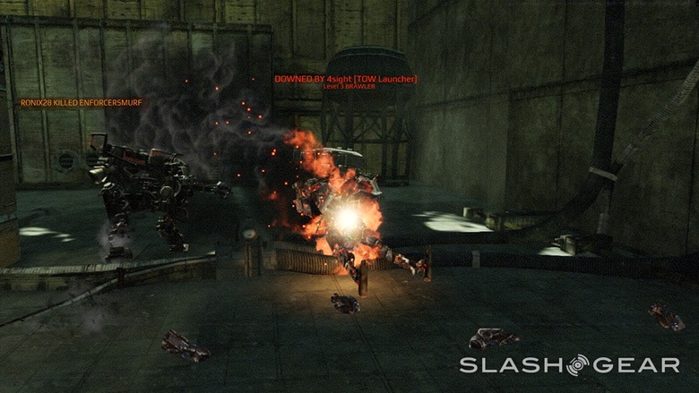 Gameplay controls are rather standard and extremely responsive – WASD and Shift-hold to dart one way or the other, holding down the space bar makes you take off and fly, and holding down the letter C sits your mech down so your back-up helper bot can fly around and repair your broken bits. Communication between players online seems to be up to par as far as both microphone chat and on-screen type, and we've experienced no noticeable (or otherwise bothersome) lag in any respect and load-times have been, again, surprisingly quick.