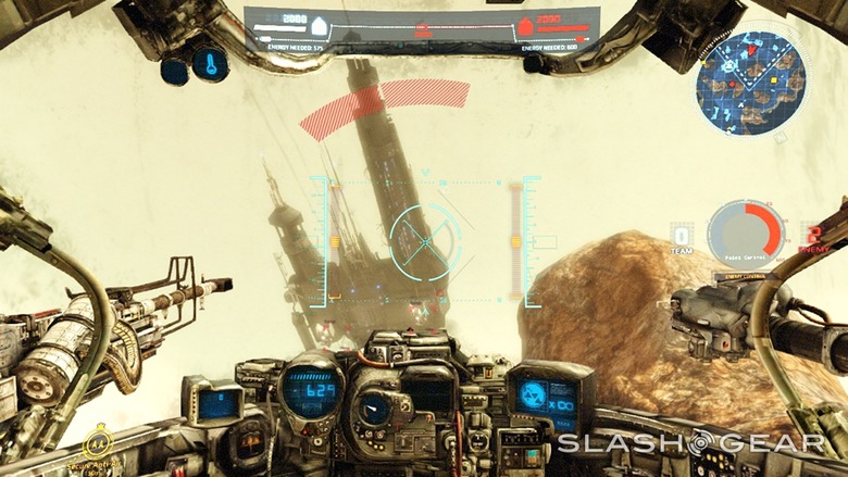 When your ship is launched, you control the anti-air to attack your enemy's ships and protect your own ship until your ship has reached its goal – and the enemy is massacred. This and the rest of the modes all exist in a fantastic set of environments the likes of which we've only otherwise seen in the highest quality first-person-shooters for high-powered PCs in the past. That and Total Recall or Blade Runner – and the detail is surprisingly deep.