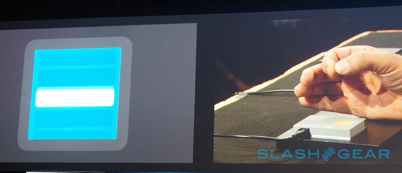 It gets even more interesting when you combine the measurements. Setting the time on a conceptual smartwatch UI, by turning the virtual dial with his fingers close to the sensor Poupyrev adjusted the hour, whereas moving his hand higher up adjusted the minutes instead.