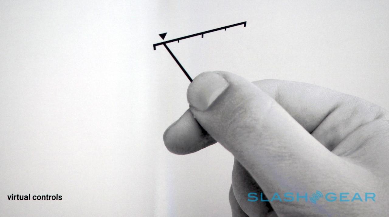 The possibilities are huge. Rubbing his fingertips together, Poupyrev showed how you could twiddle a virtual dial with incredible precision, or push a virtual slider. Tapping his fingertips together, he pushed an invisible button.