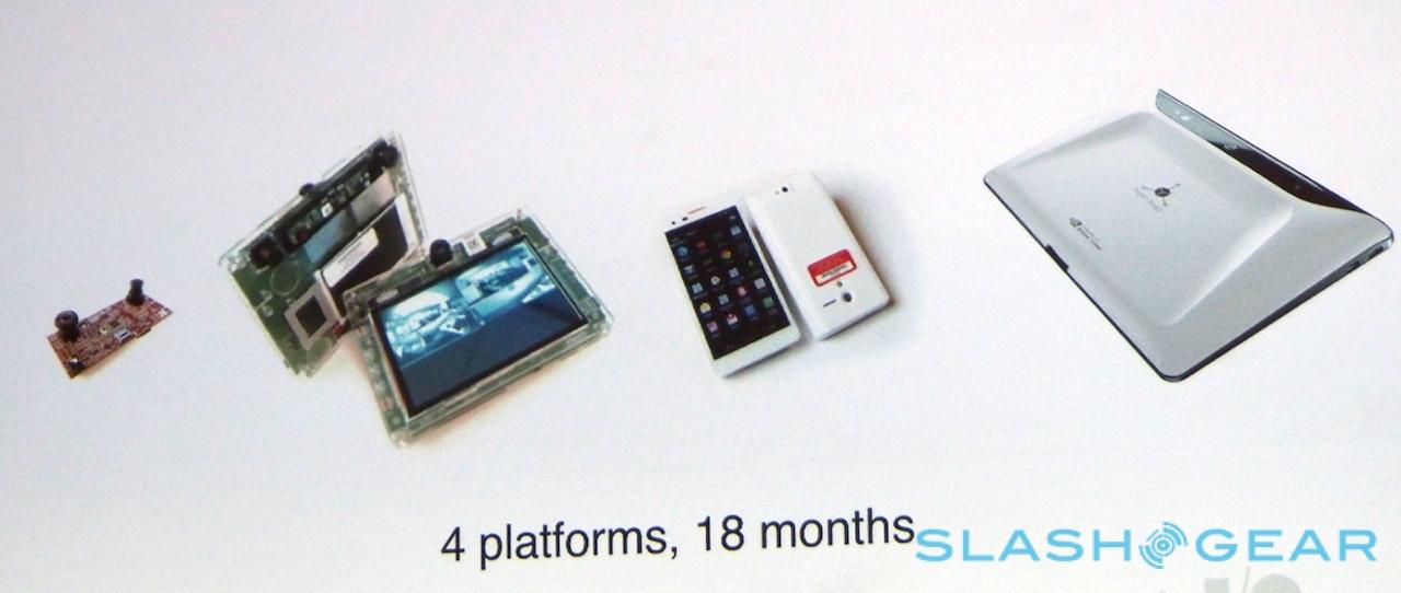 Based on the success of that, Lee & Co. pieced together a skeleton 7-inch tablet – effectively sandwiching the components between a couple of slices of transparent acrylic – upon which much of the core development was done. That was followed by the smartphone-scale device with which the project first hit public awareness.
