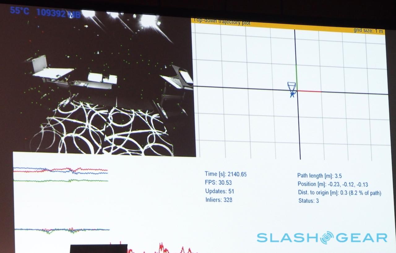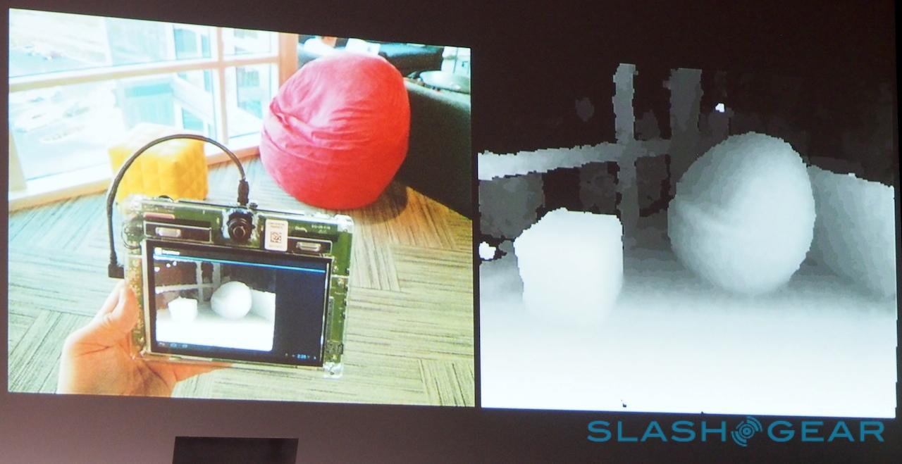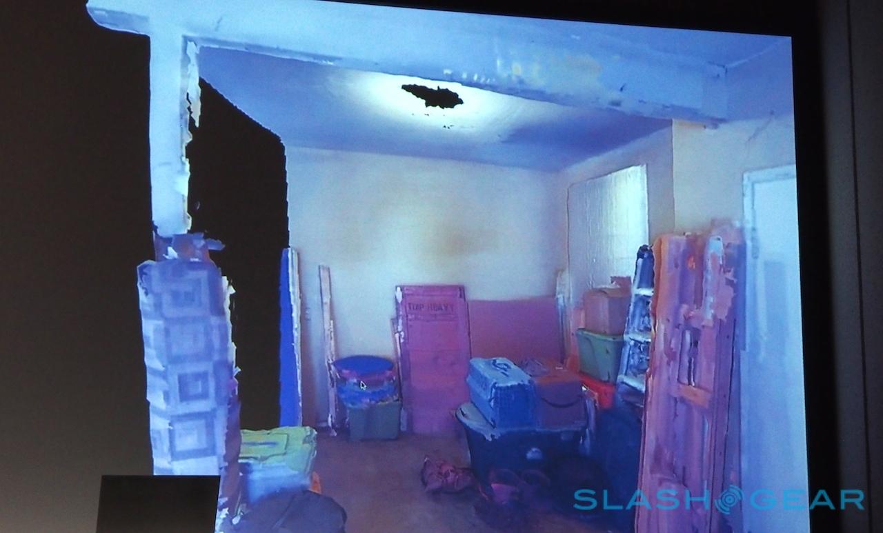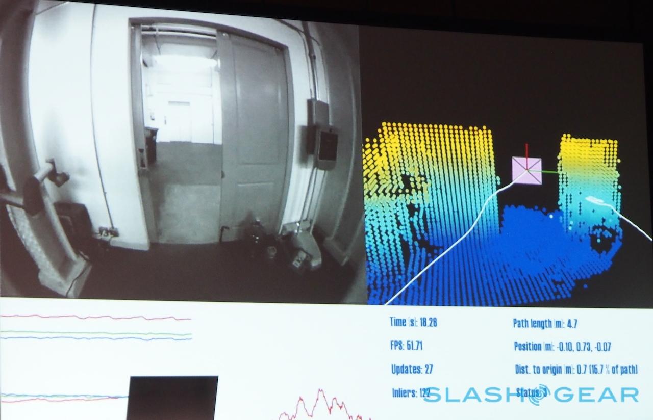 Theoretically it's all the same basic approach: use a combination of cameras to replicate how the human eye perceives, with a broader fish-eye view and a more detailed central portion which mimics the human fovea. They're accompanied by depth sensors, allowing Tango devices to build up a precise 3D modeled view of rooms, staircases, and anything else, without requiring GPS, WiFi, or Bluetooth.