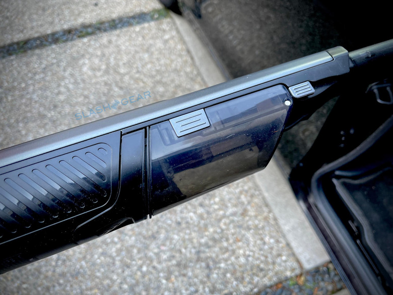 Despite its sleek and unified look, the body is actually modular and you can easily remove the receptacle, filter, and battery just by pressing a few well-hidden buttons. One design quirk, however, is that the receptacle dislodges at an angle that will spill its contents if you're not careful and not standing directly in front of a trash bin.