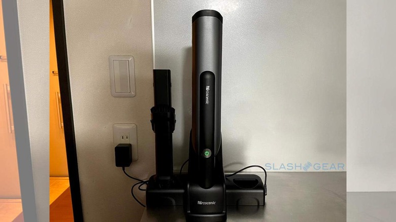 The charging dock itself mirrors the simplicity and functional design of the vacuum cleaner. In addition to holding and charging the S1, it also has slots for the mattress brush and the 2-in-1 extension that also has a slide-out brush for those hard-to-reach places. The dock's small footprint allows it to be placed anywhere. At least anywhere near a power outlet, of course.