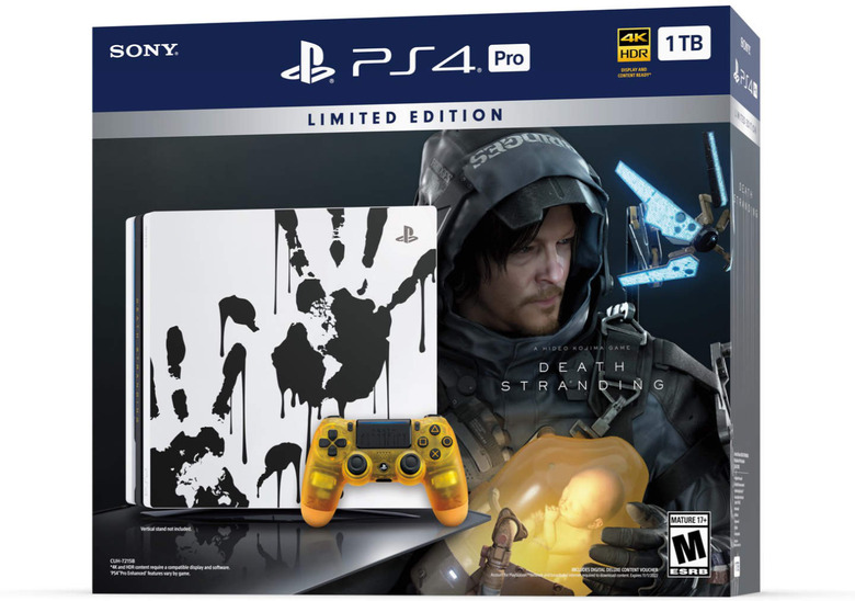 The new Limited Edition Death Stranding bundle features a 1TB PS4 Pro console alongside the Blu-ray disc version of the Death Stranding game. The translucent orange wireless controller's design is based on the game's BB pod, according to Sony, which plans to offer the bundle in both the United States and Canada.