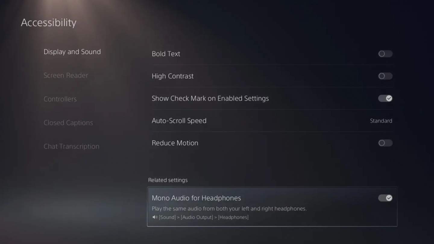 As far as accessibility is concerned, the PS5's screen reader feature is picking up support for Russian, Arabic, Dutch, Brazilian Portuguese, Polish, and Korean. In addition, the Display and Sound settings menu will let you toggle on mono audio for headphones, though that feature isn't available over Bluetooth. You can even opt to apply checkmarks to those toggles so it's easier to tell at a glance which features you've turned on.