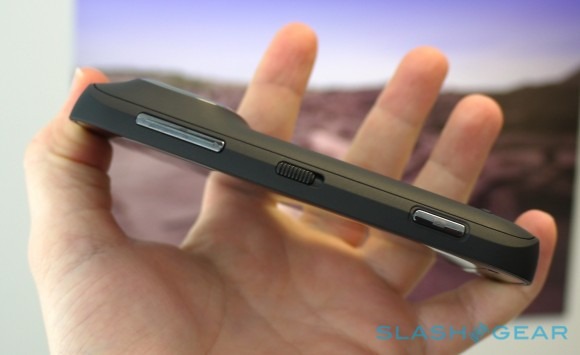 Ironically, even the 808 PureView doesn't feel so large after a while. We had a brief chance to revisit the Nokia today, and what had felt chunky and swollen – albeit also pumped full of promise – when we first saw it earlier this week, had evolved into a more familiar shape. The phone fits neatly into the hands, the curve of the casing and the protruding lens bulge allowing your fingers to wrap around it comfortably, and the side buttons fall under your fingertips. There's no need to take one hand away to use pinch-zooming, either – there's a single finger slide-zoom instead – and that helps keep shots steady. Sure, it'll never be considered a small phone, but whether it's a side-effect of the growing respect for its imaging capabilities, or simply regular old familiarity, what initially appeared vast somehow becomes less objectionable.