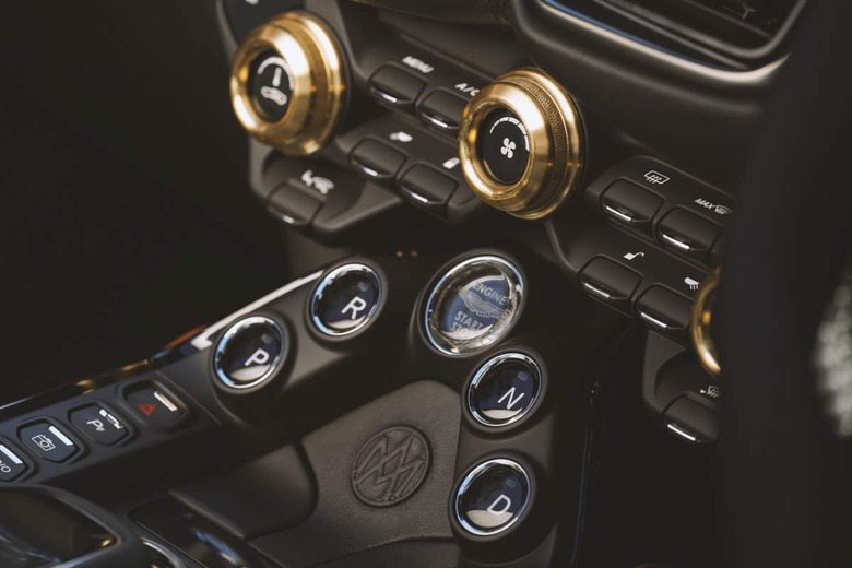 However, the interior's most noticeable feature has to be those genuine brass rotary controllers. Also present is an embossed, period-correct Aston Martin logo on the center console to complete the retro flavor.