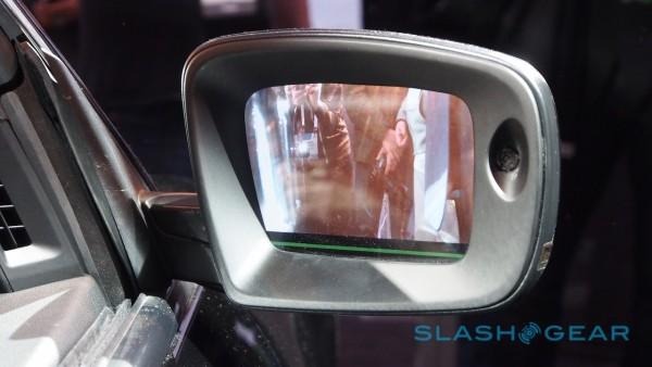 They're not the only displays. The rear-view mirror has been swapped for a widescreen LCD which beams in a view from cameras at the rear of the car, and while there are wing mirrors on the sides, they have screens too rather than glass.
