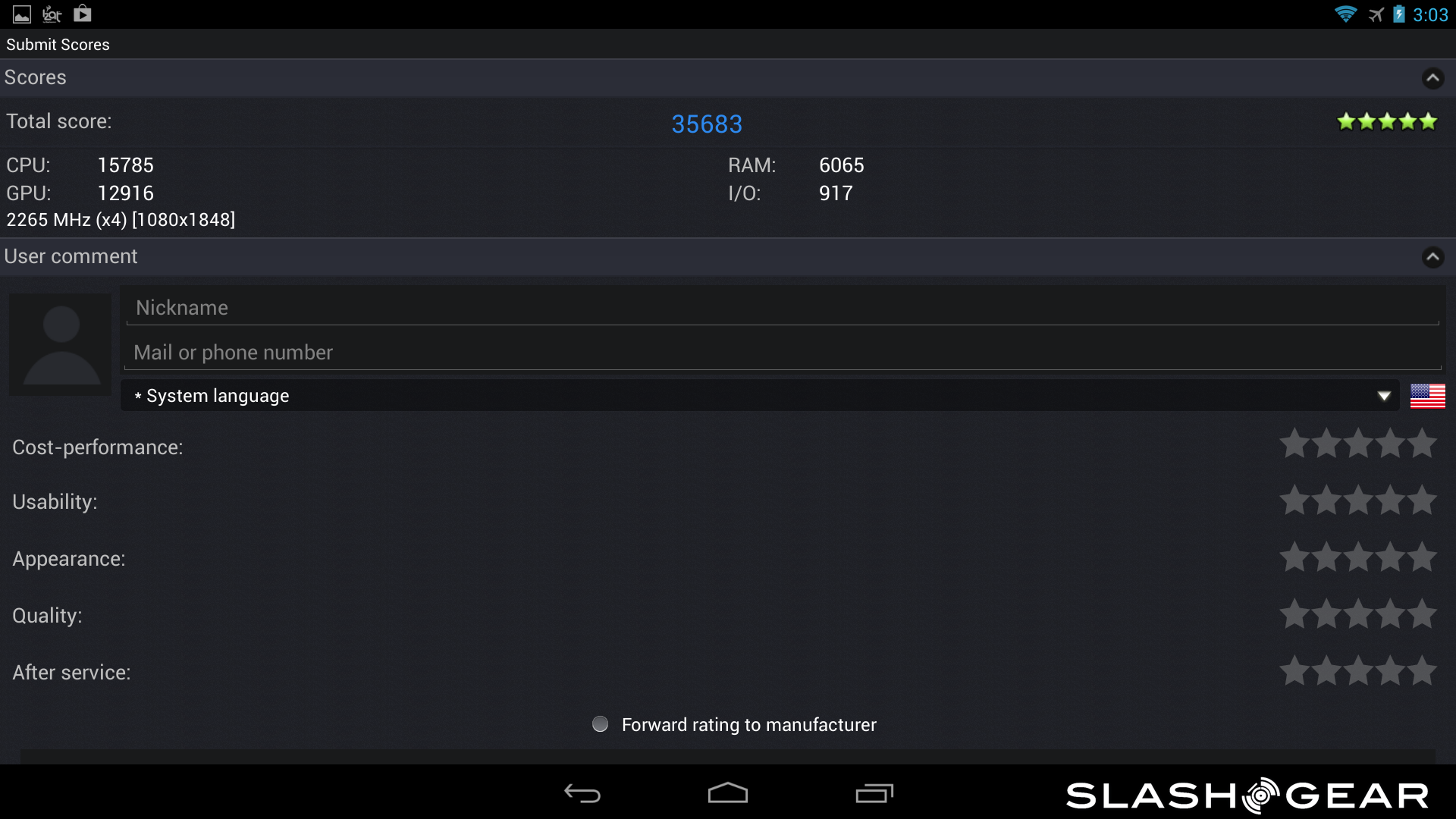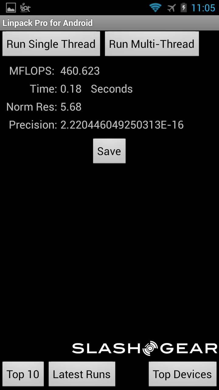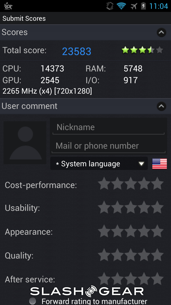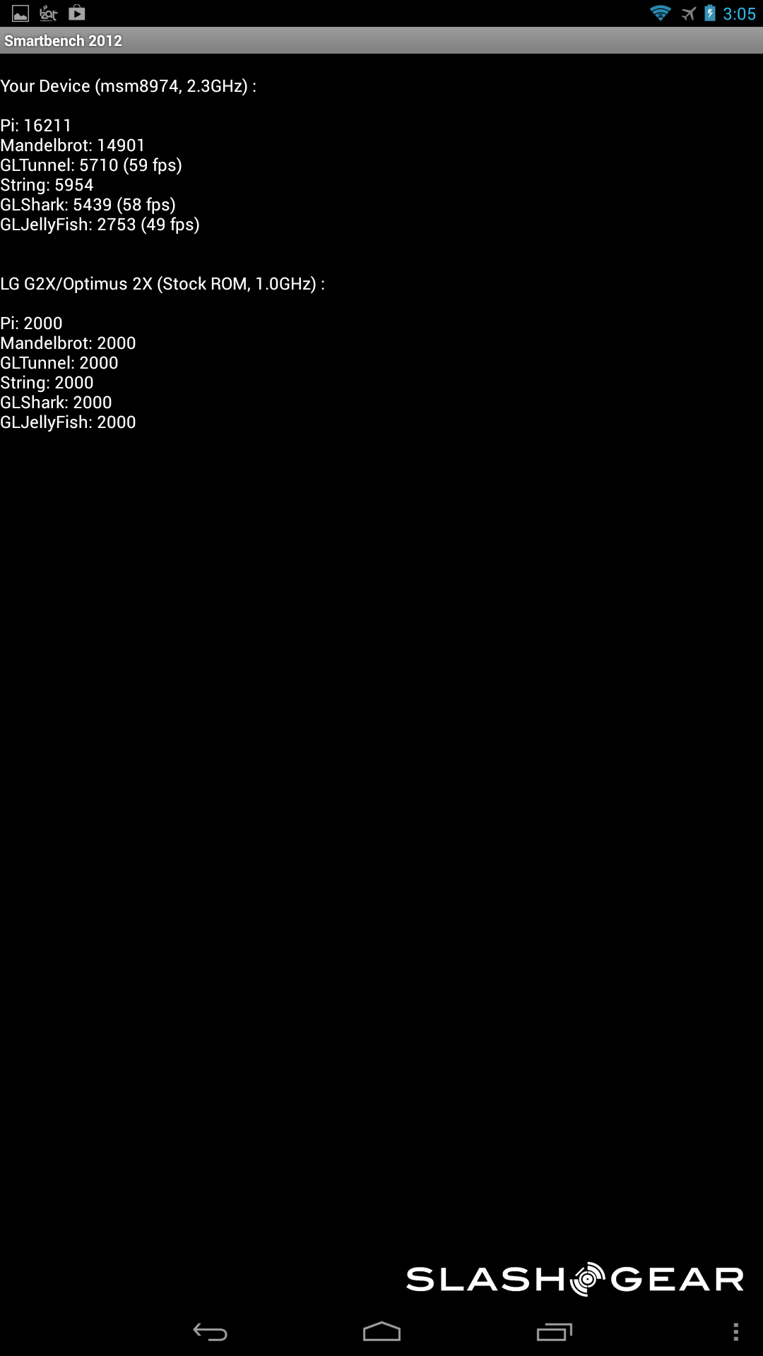 As far as the smartphone goes, this one also has the quad-core Krait 400 CPU with an Adreno 330 GPU and 2GB of RAM. The difference here is in the display, which is 4.3-inches at a resolution of 1280 x 720. Aside from the smaller display, the results were just as impressive to see as from the tablet kit. Once again, feel free to dive into the gallery below to check the scores from your favorite benchmarking application.