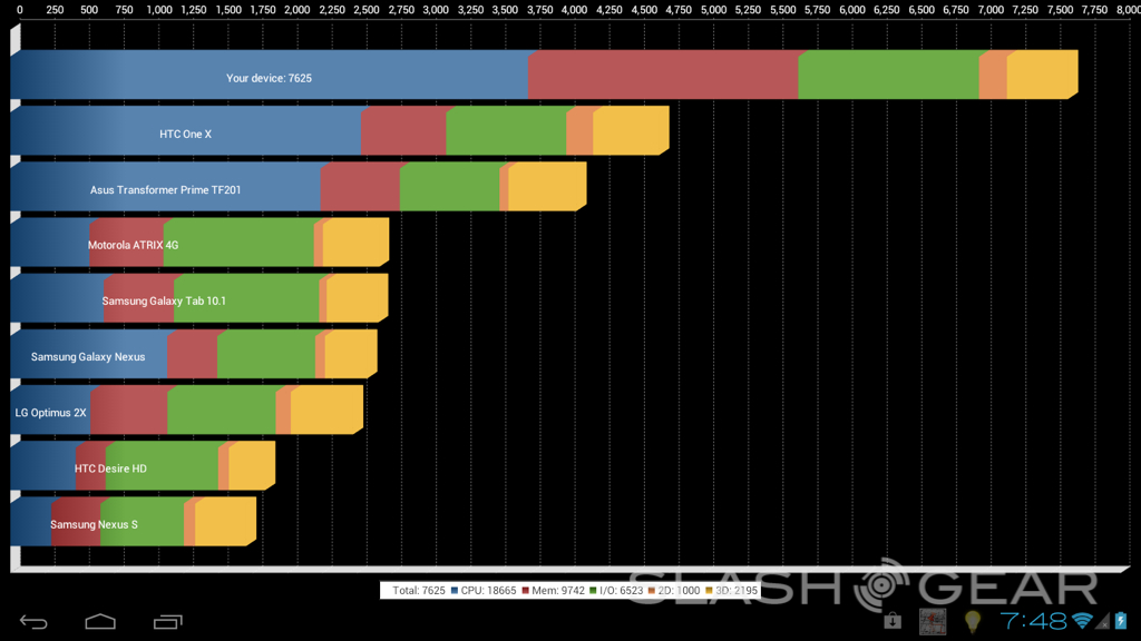 While this is just a MDP device geared at developers, it's already clearly beating the Nexus 7, and Samsung's Exynos 4 Quad powered Galaxy S III easily. These devices don't give us an idea of battery life so that is still up in the air, but Qualcomm promises "all-day battery life." For now take a quick glance at the results below. We'll continue to update with additional screenshots and more tests, but Qualcomm has another winner here to top the charts. We can expect to see the new S4 pro quad-core arriving in devices later this year.