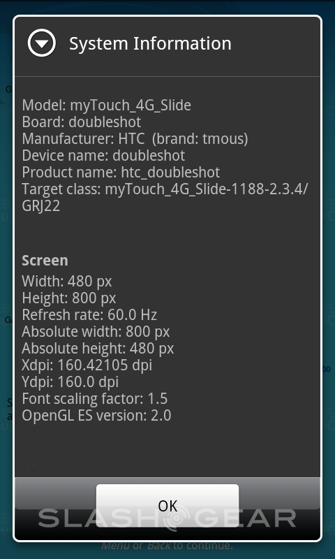 You can even go to System Information and get specs on your device you'd never otherwise be able to access in a non-rooted machine, this being rather helpful for reviews, if you know what I mean, of devices taken care of by people like you know who. Latest Numbers give you the results of every test you've just taken, while Compare shows you how you rank against their stock scores. System Information is the button you want if you want to see some junk about your own device, and MORE has all the shortcuts to webpages of the developers, about and pick websites (for the tests) that you want. It's also got access to Tutorial Mode, Override Safeguards, the Acid3 Test.