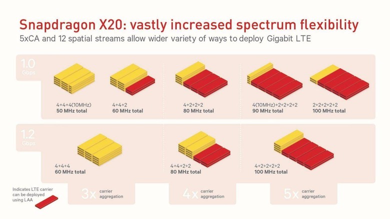 Interestingly, there's also Licensed Assisted Access (LAA) support from the LTE Advanced Pro modem. That basically combines a small chunk of licensed spectrum – as small as 10 MHz, Qualcomm says – with unlicensed spectrum, allowing for broader LTE deployment. However down the line, as 5G begins to roll out, Gigabit LTE will be increasingly important. 5G networks, Qualcomm points out, will be seriously limited in their deployment to begin with; Gigabit LTE is expected to fill in the sizable gaps as carriers get up to speed.
