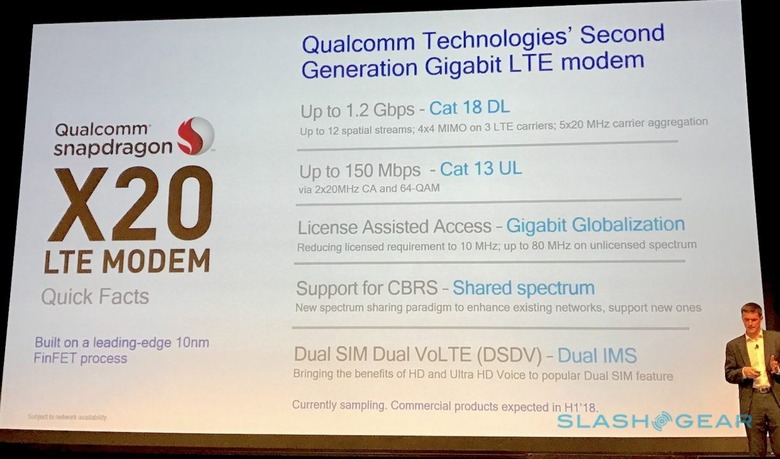 Gigabit LTE may be the headline feature, but it's not the only improvement. One welcome change is Dual SIM Dual VoLTE support, which allows for twin-SIM devices, both of which can use HD and Ultra HD Voice. There's also backward compatibility with everything running through the history books back to GSM/EDGE, with more than 40 cellular bands supported on a single radio and over 1,000 carrier aggregated band combinations.