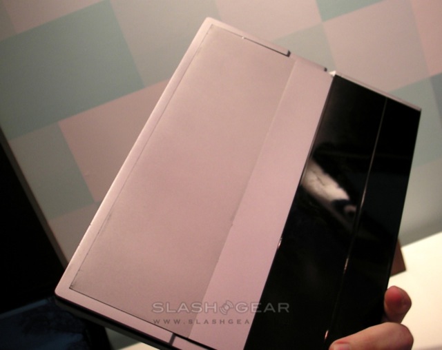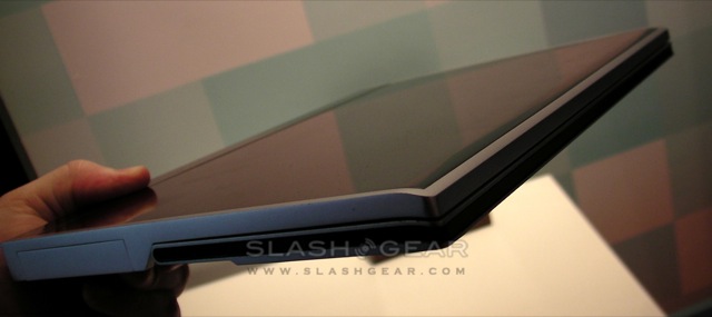 This particular model didn't have a SIM card inserted, but we booted up the WiFi connection and managed to do a little surfing. In terms of speed, it's as nippy as a netbook is, and moving up and down the webpage is actually better with the arrow keys since it automatically jumps from link to link. Slightly less impressive was keyboard flex, with not only the QWERTY itself bouncing and twisting during typing, but – as you can see in the video – the whole base of the Smartbook bending under the weight of the screen when held at the palmrest. Still, this is a prototype after all; Qualcomm say Lenovo's will be thinner again, with more pronounced curves at the corners.