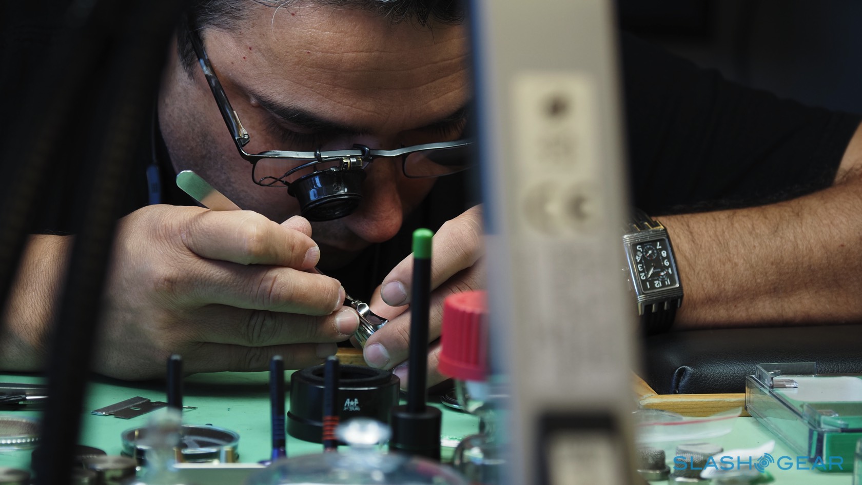 Slowly, carefully, tiny pieces became a beautiful timepiece once again. "This is the best relume dial I've ever seen in my life," Sal told me, as we examined James' handiwork under a super-high resolution microscope, "and it's on par or better than what you'd expect to see leaving the Rolex factory."