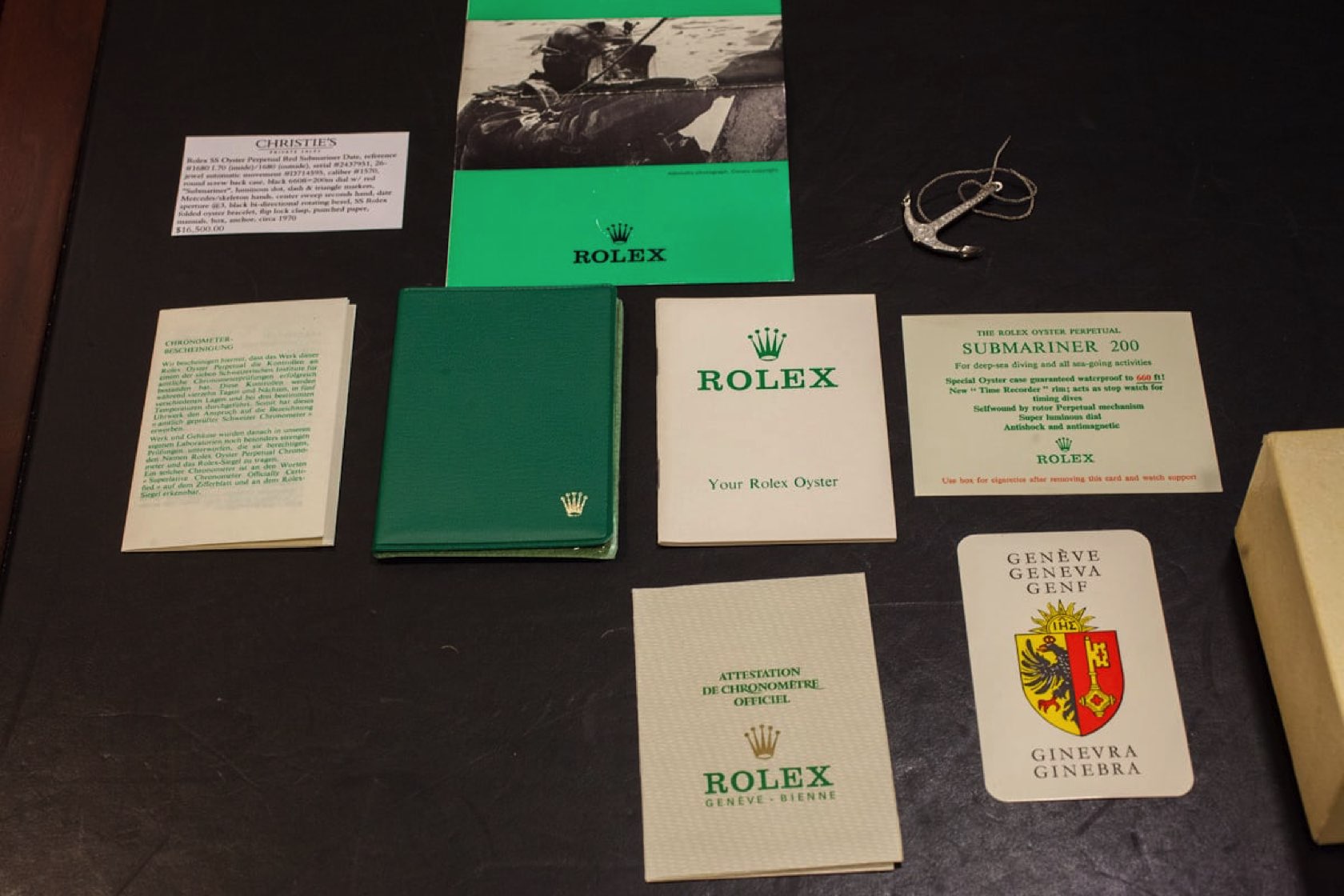 It was everything a vintage Rolex collector would be looking for. The inner box, the outer box, the original chronometer certification papers, the brochure and booklet, the calendar card, the paperwork wallet, the Submariner 200 information, and even the metal Rolex anchor.