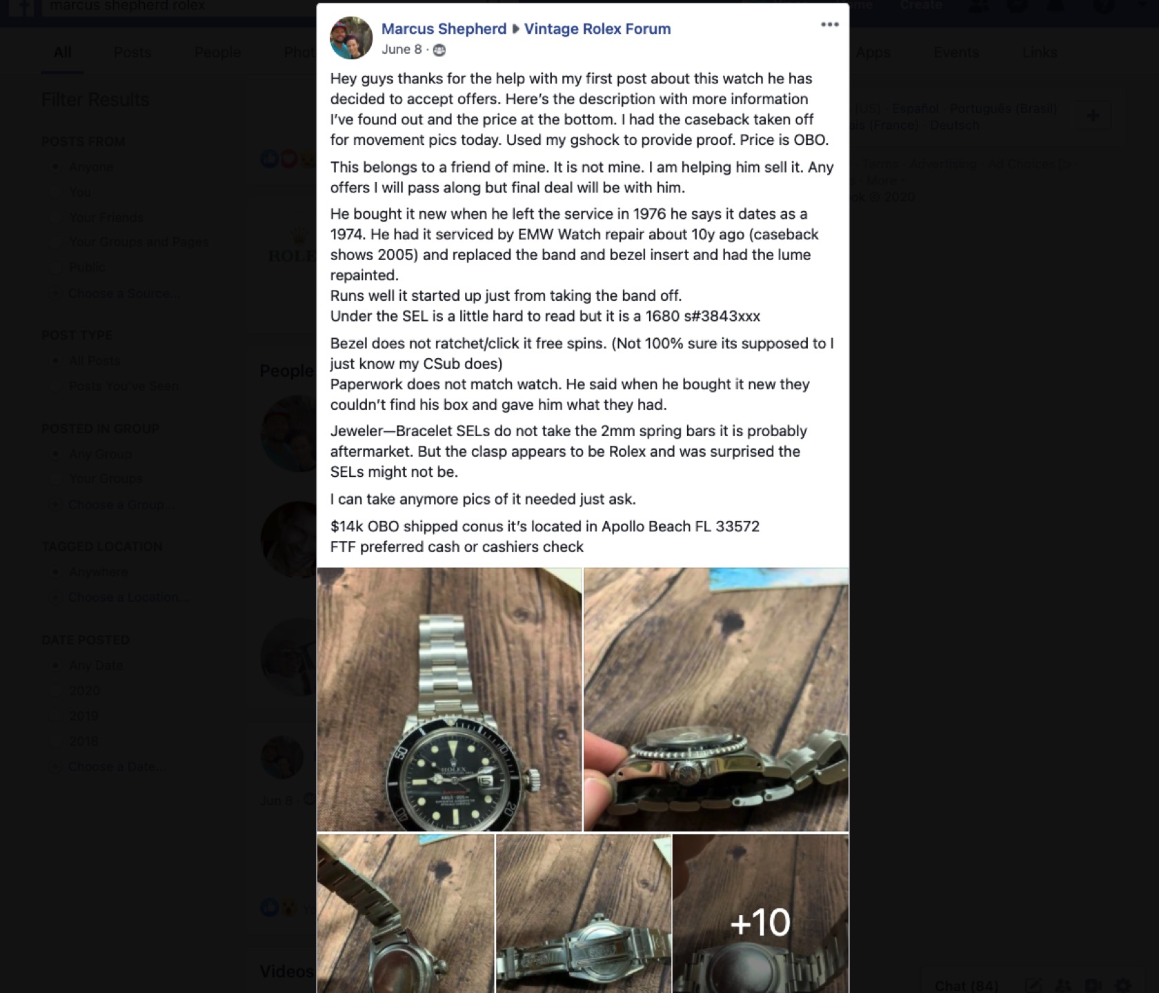 I first saw my grail watch on Facebook, so, ironically, it was Facebook Marketplace where I stumbled onto another one, nearly 8-years later. Only problem was, it was far too expensive for what it was: not every Rolex is created equal, or ages equally for that matter. The dial markers weren't original, meaning that the original Tritium paint was replaced with newer material applied. Then there was the aftermarket bezel, bezel insert, and some terrible, fake-looking pearl in pearl (PIP). Finally, the bracelet looked to be aftermarket, and incorrect for the watch as well.