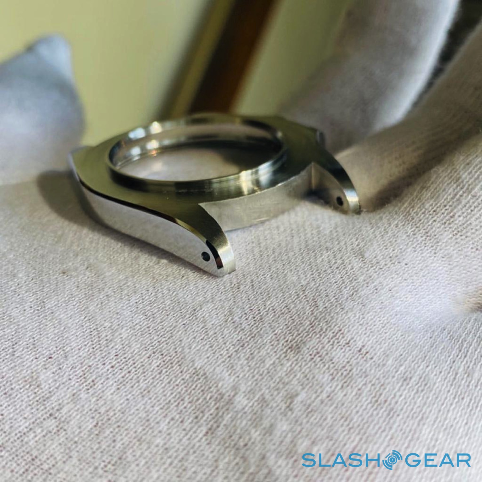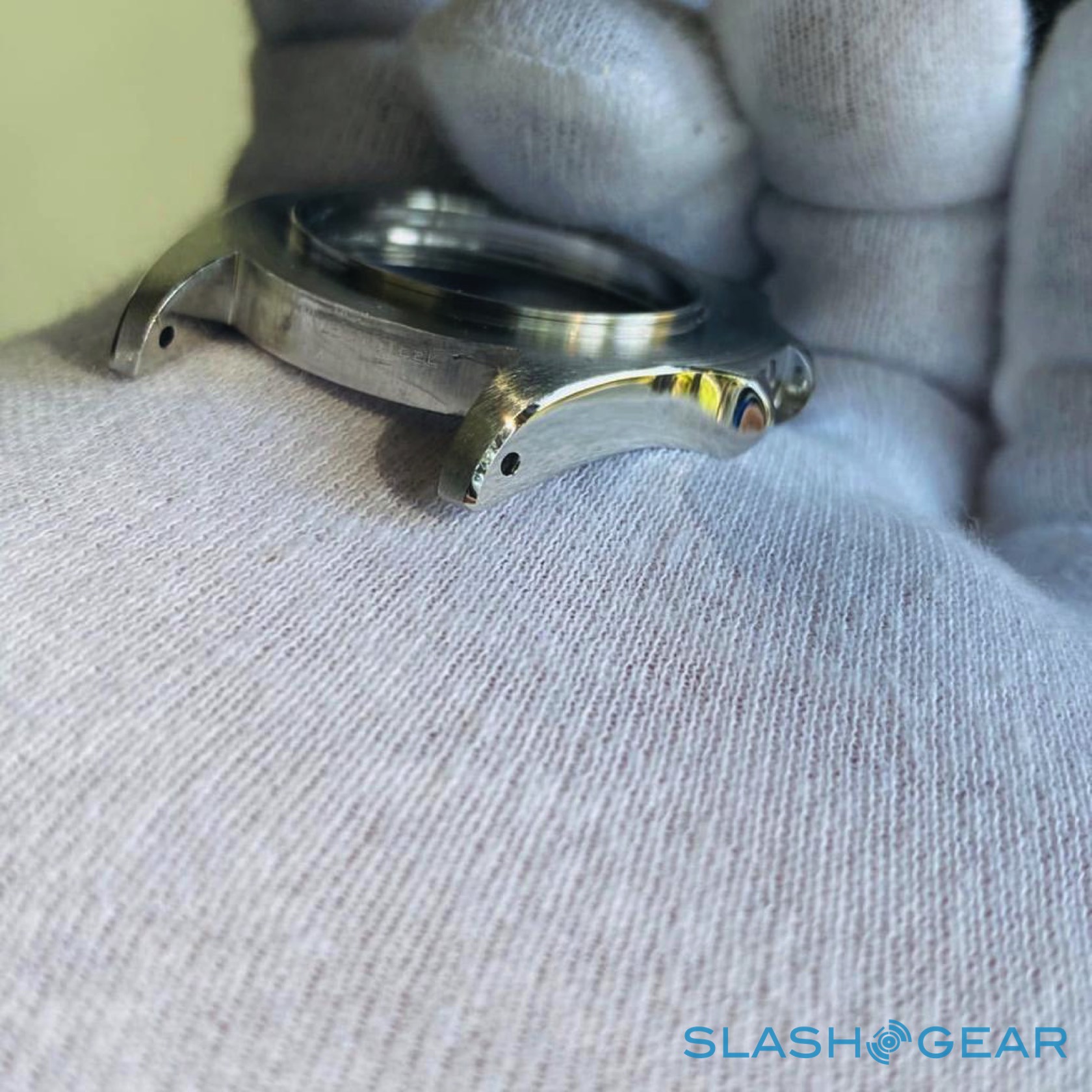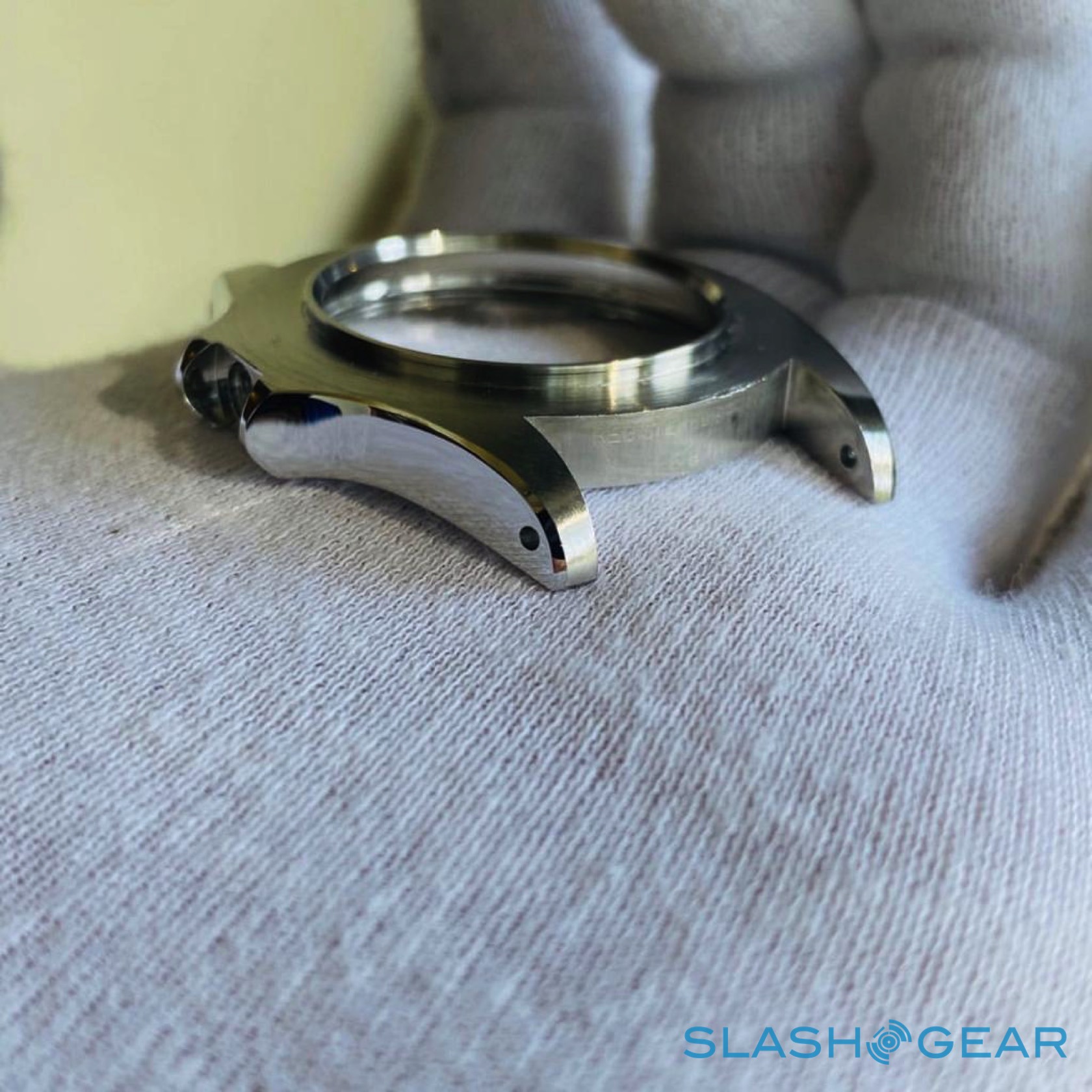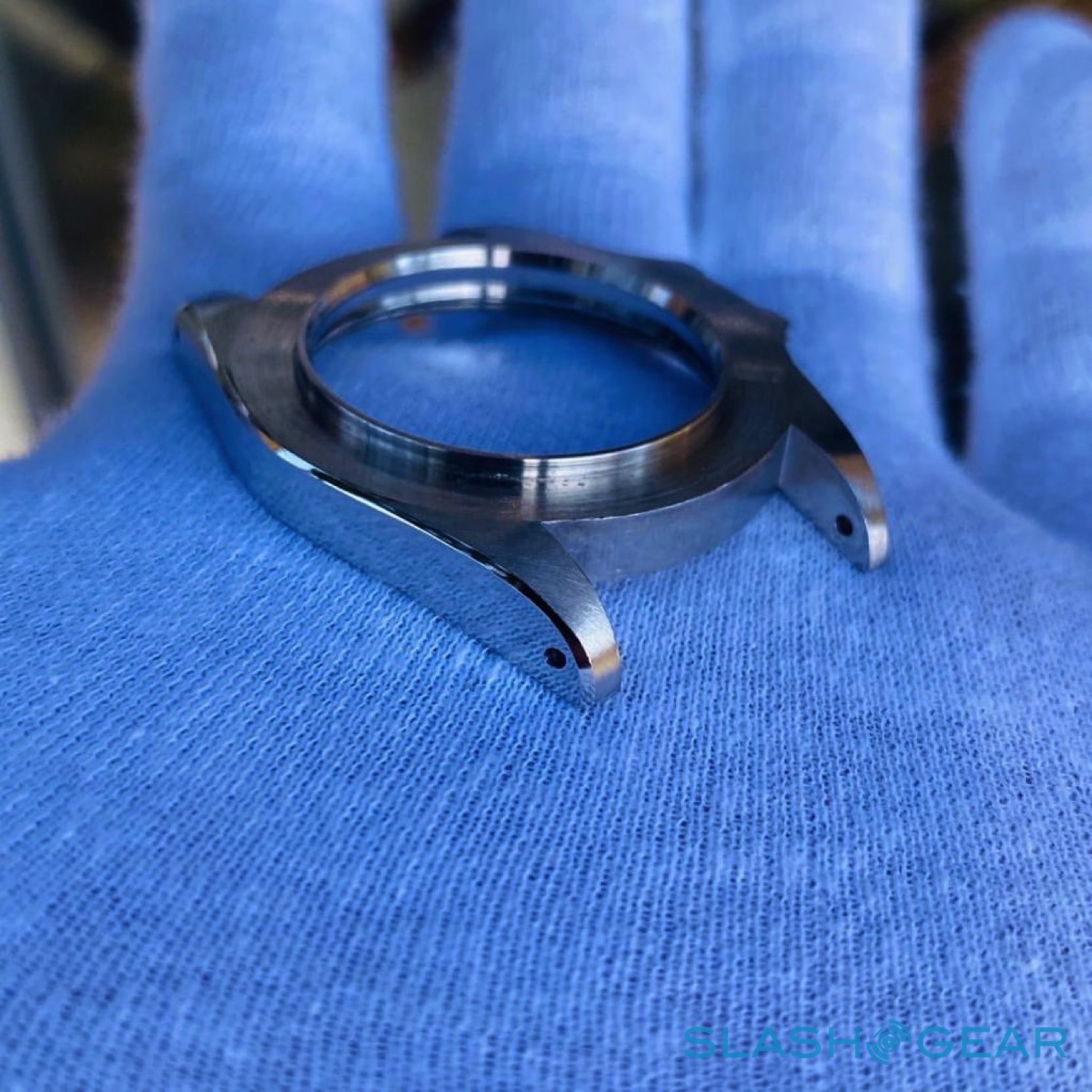 Time and wear had taken its toll on the casing, and what Michael had to work with. The lug at 5-o'clock, for example, is still thin: to make it match the other lugs, he'd have needed to laser weld more material on, a process both time-consuming and expensive. Instead, we prioritized filling in the deeper scratches, and adding material to sharpen the edges at the bottom of the case.