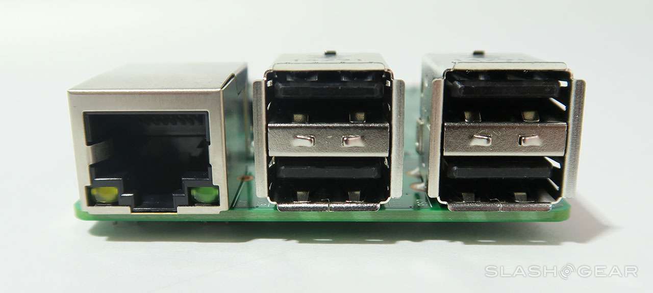 • Processor (SoC): Broadcom BCM2836 (CPU, GPU, DSP, SDRAM, and single USB port)
