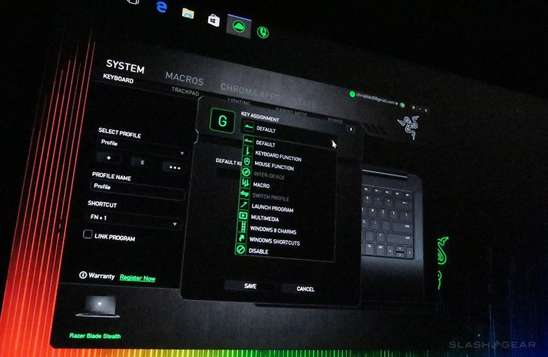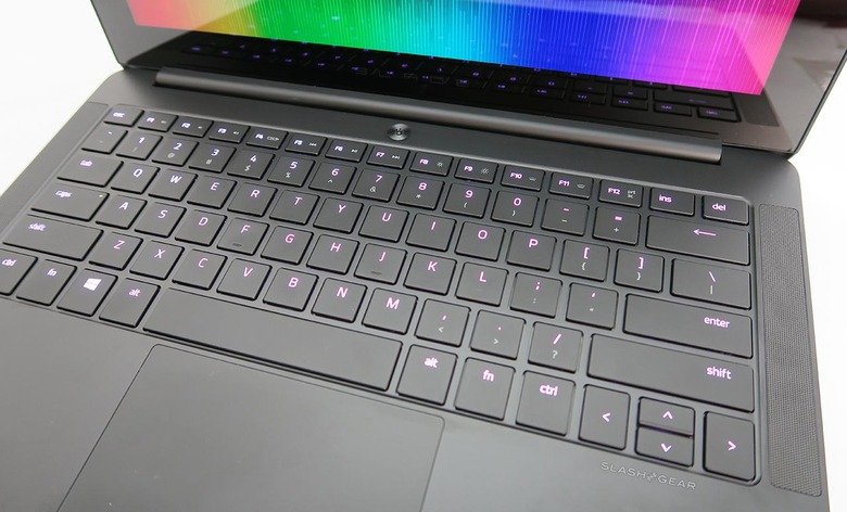 Each one of the keys here has the ability to be attached to macro commands. If you have other Razer peripherals – like a Razer keyboard for your full-sized gaming PC, for example – you'll be able to save your keyboard setups for individual games or apps to the cloud, available to you then through Razer Synapse here on this notebook. Handy!