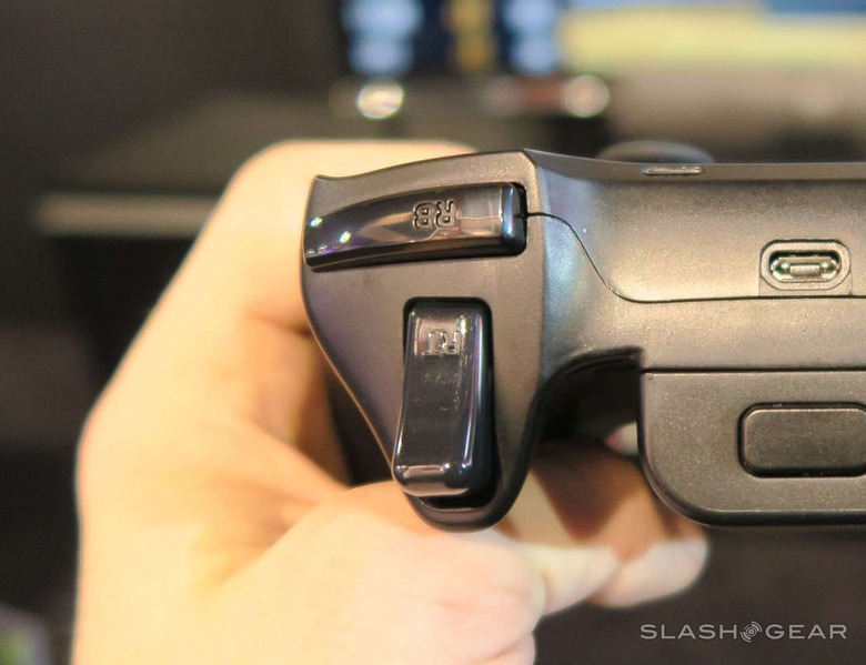 Four "Hyperesponse action buttons" (XYAB) are included on the right, and directional buttons are included on the left. at the base you'll find Android-friendly navigational buttons (both back and home), while a power button and a couple more physical buttons are included near the top of the controller just below the LED lights.