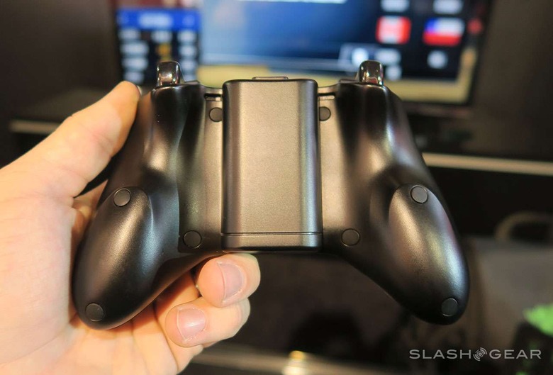 ABOVE: Taking a peek at the near-zero latency between the controller and the Forge TV – ON the showfloor at CES 2015. If the controller works this well before final hardware and in the middle of a tech convention with thousands of other signals blasting it from all directions, we're convinced it'll work great in our living room too.