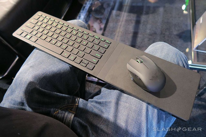 The Razer Turret is a Living Room Gaming Mouse and Lapboard. That's a keyboard with a fold-out space to use your mouse, all prepared for your lap for when you're sitting on your couch at home.