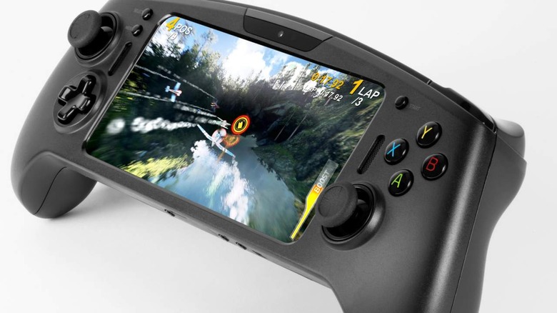 There's a front-facing FHD 1080p webcam (5MP), and a set of hardware and touchscreen controls. You'll find the XYAB control buttons on the right, along with a hardware start button, and both Select and Menu on the left with a cross directional pad. There are two joysticks, and two front-facing speakers supported by Snapdragon Sound Technology.