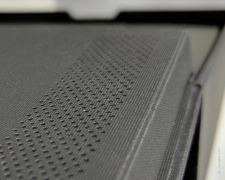 On the back of the phone layer are two long rows of dots, printed in black on the black of the paper. These are put in place for a tactile moment in the end user's unboxing – in black, there's no other reason why they would be here. They're just in place to keep the entire package cohesively stylish, classy, and elite.