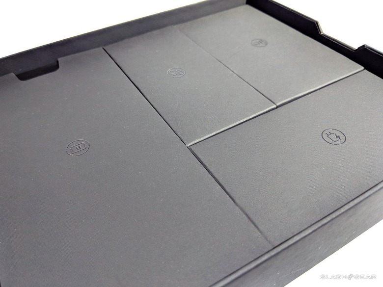The same is true of the USB cord included with this package. The black-on-black printing, the drawer, and the icon. The iconography on this and each other package in the box are also printed in black – just shiny enough to be seen and used by the end user upon opening.