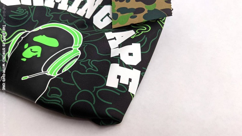 The BAPE factor here is largely the printing. In the mix is the new BAPE outline camo pattern with triple snake Razer logo among the masses. The "A GAMING APE" with headset-wearing ape is here in full effect, too. UPDATE: This special edition Razer x A Bathing Ape Goliathus Speed (Medium) was made available for around $50 in December 2020, but has since sold out!