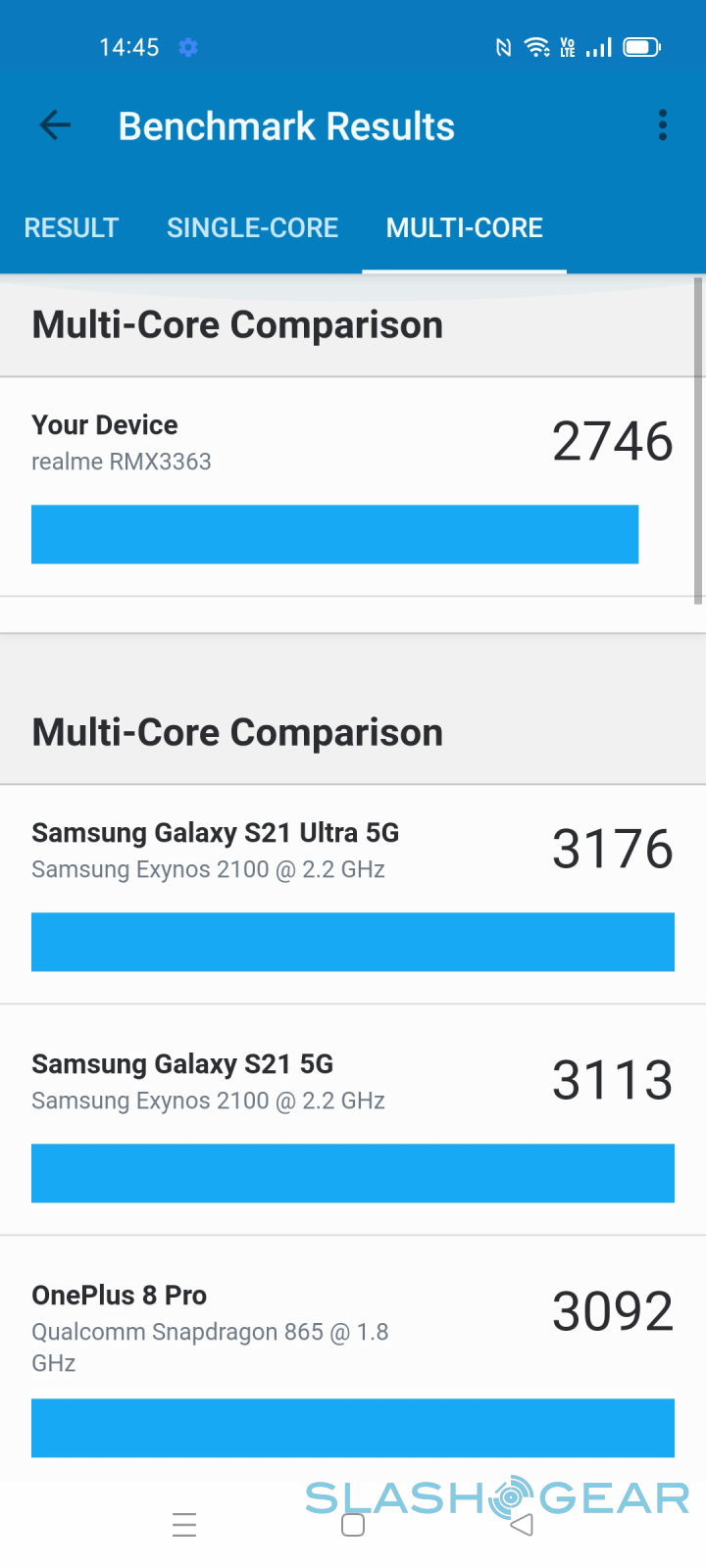 It is unsurprising that the Realme GT Master Edition doesn't even come close to last year's top flagships in terms of benchmark scores. In real-world use, however, only the heaviest of multitaskers and gamers will feel the phone groaning under stress. On the software side, Realme UI 2.0 with Android 11 looks deceptively vanilla but comes with a ton of preloaded apps that you can fortunately uninstall.