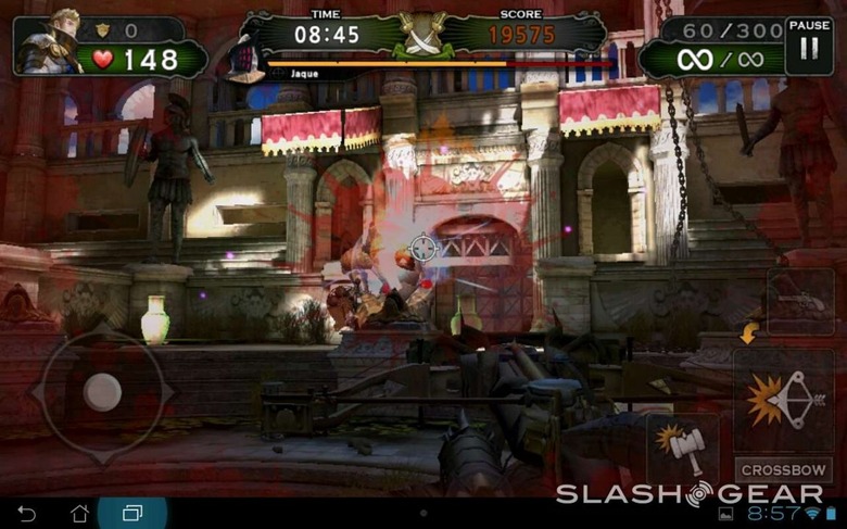 This week the folks at NVIDIA have teamed up with BRIDEA and NCsoft to bring a twisted first person shooter by the name of Renaissance Blood THD for Android devices working with Tegra 3 quad-core processors. This game sets you up with a crossbow, a spiked mace, and what's essentially a steampunk machine gun. You've got infinite arrows, a limited amount of bullets, a strong arm, and hall after hall of gladiators, mummies, machine/man hybrid beasts that want nothing more than to cut you down and devour your flesh.