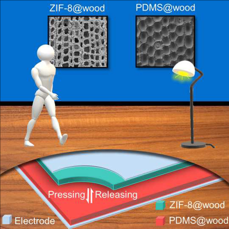To enable the ability to gain and lose electrons, researchers coated one piece of wood with polydimethylsiloxane (PDMS), which is a type of silicone able to gain electrons when contacted. The other piece of wood was functionalized via in-situ-grown nanocrystals called zeolitic imidazolate framework-8 (ZIF-8). ZIF-8 is a network of metal ions and organic molecules that has more tendency to lose electrons than gain.