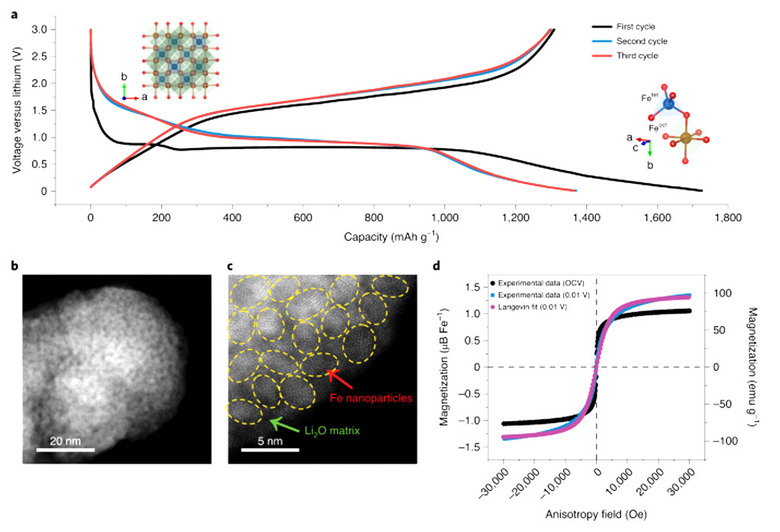The standard method of battery power storage has lithium ions move through materials, or convert material crystal structures. Energy can be stored both within transition-metal oxides as well as at the surface of already-reduced metallic nanoparticles formed during discharge at low potentials in transition metal oxide LIBs.
