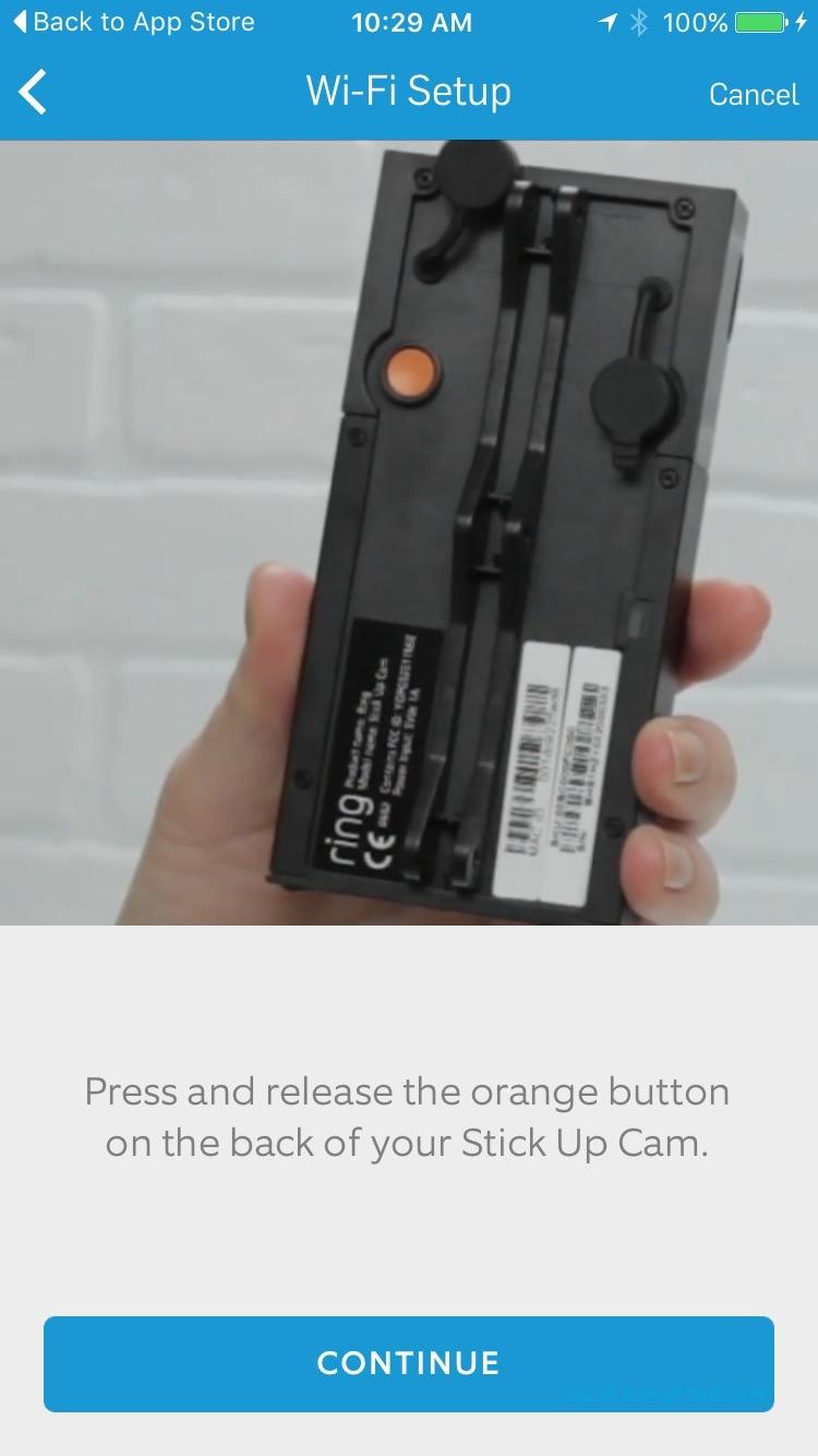 Ring advises setting the camera up with your WiFi credentials before you fit it to the wall, which is sensible. After hitting a pairing button on the back – covered, normally, with a small rubber gasket – you connect your phone to the wireless network the Stick Up Cam creates, make an account (or sign into an existing one) and scan for your home network. While you're doing that, it's also advisable to charge the camera's integrated battery, which is via a microUSB port under a second rubber gasket.
