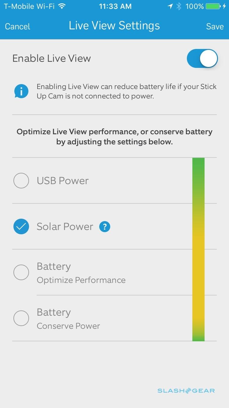 Once on solar power, the live view generally started in under 10 seconds. There's a fourth setting, for if you've provided constant USB power, which trims the delay even further. Once you're viewing, you can hear through the the camera's microphone, and – by pressing a "Talk" button in the app – speak to whoever is nearby through its speaker.