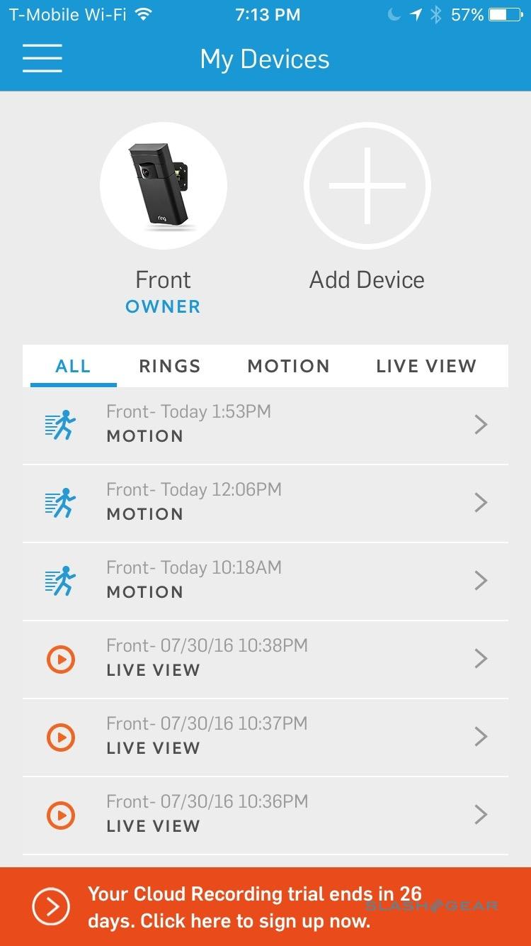 Ring says the 5,200 mAh battery should last 6-12 months of "regular usage" though that'll depend how often you stream live video. A recent addition to the service, you can hit the button at any time in the app and see a live feed from the camera. Periods of live video viewing are stored just like motion-triggered events in the timeline.