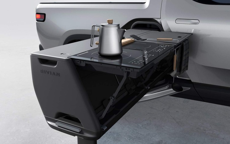 That's not the only beneficial change. If you opt for Rivian's $5,000 Camp Kitchen upgrade – which adds a slide-out prep station, sink, and induction stove to the pickup-spanning storage nook – the automaker is now going to throw in the Snow Peak Kitchen Set, at least for a limited time. That's a 30-piece cookware set.