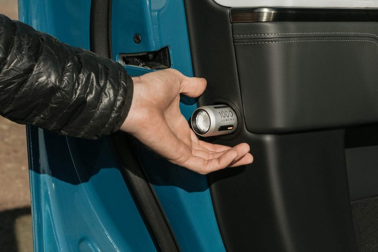 It's a great example of how Rivian isn't just trying to build a method of getting around, but something that still has value when you reach your destination. The same goes for the Torch Flashlight, a little LED light that slides out of the driver's side door, and which is also kept charged by the truck's battery.