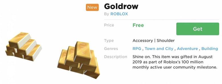 For players, meanwhile, there's a new virtual item – an exclusive gold bar shoulder accessory – which Roblox has added to its Catalog. It'll be available for a limited time to download.