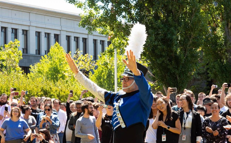 Many of those developers were on-site at Roblox HQ in San Mateo, California, today, where the company opted to celebrate in a singularly unique way. Citing a 30+ year dream to lead a marching band, founder and CEO David Baszucki rounded up staff across the various buildings at the head of the BD Entertainment musicians – complete with drums, trumpets, and more – and the San Francisco 49ers Gold Rush cheerleaders.