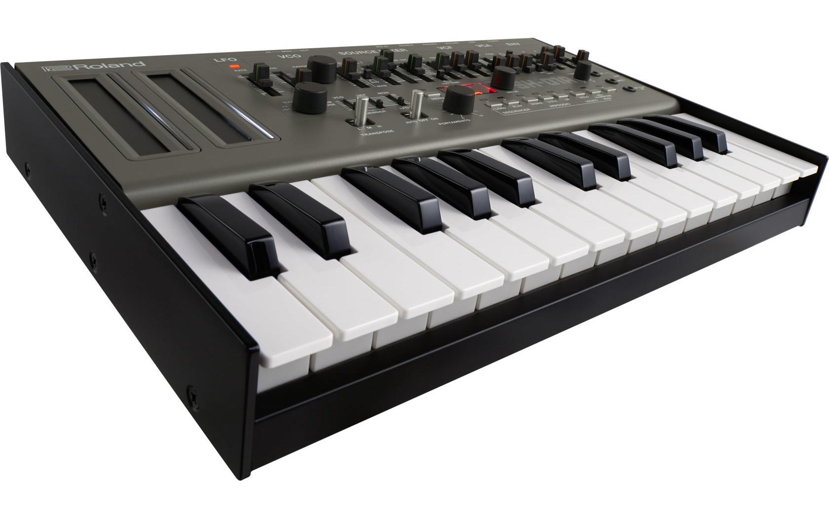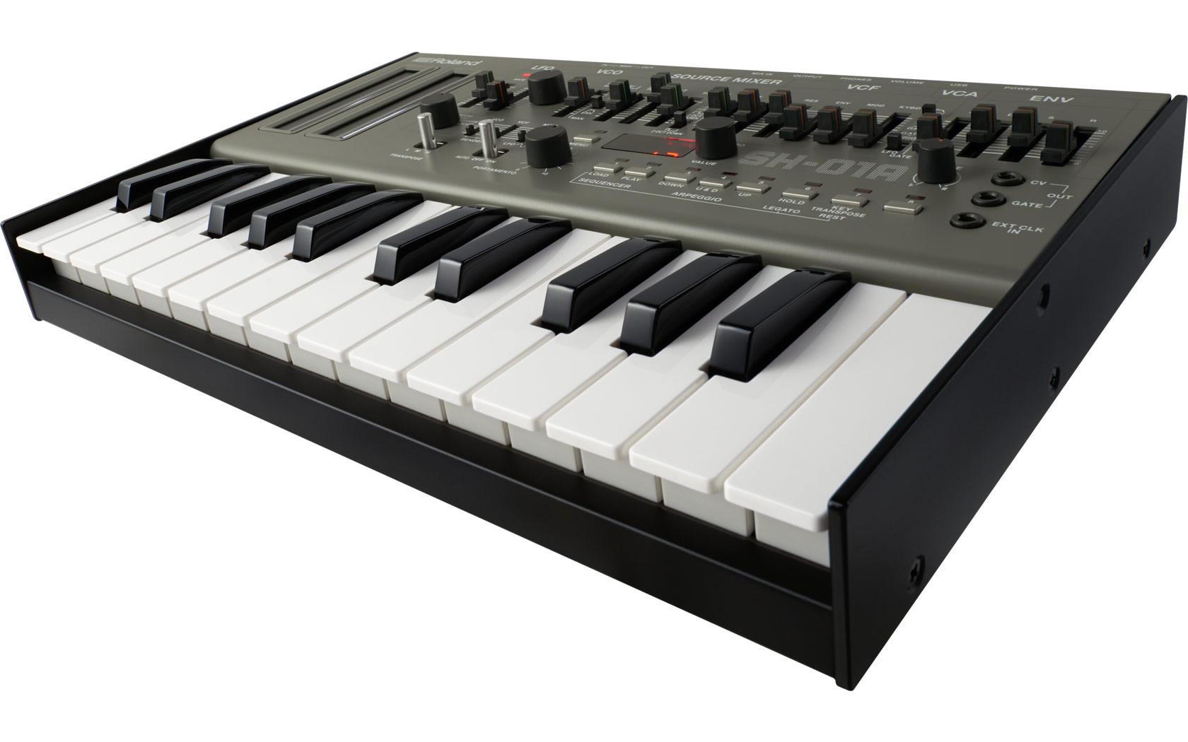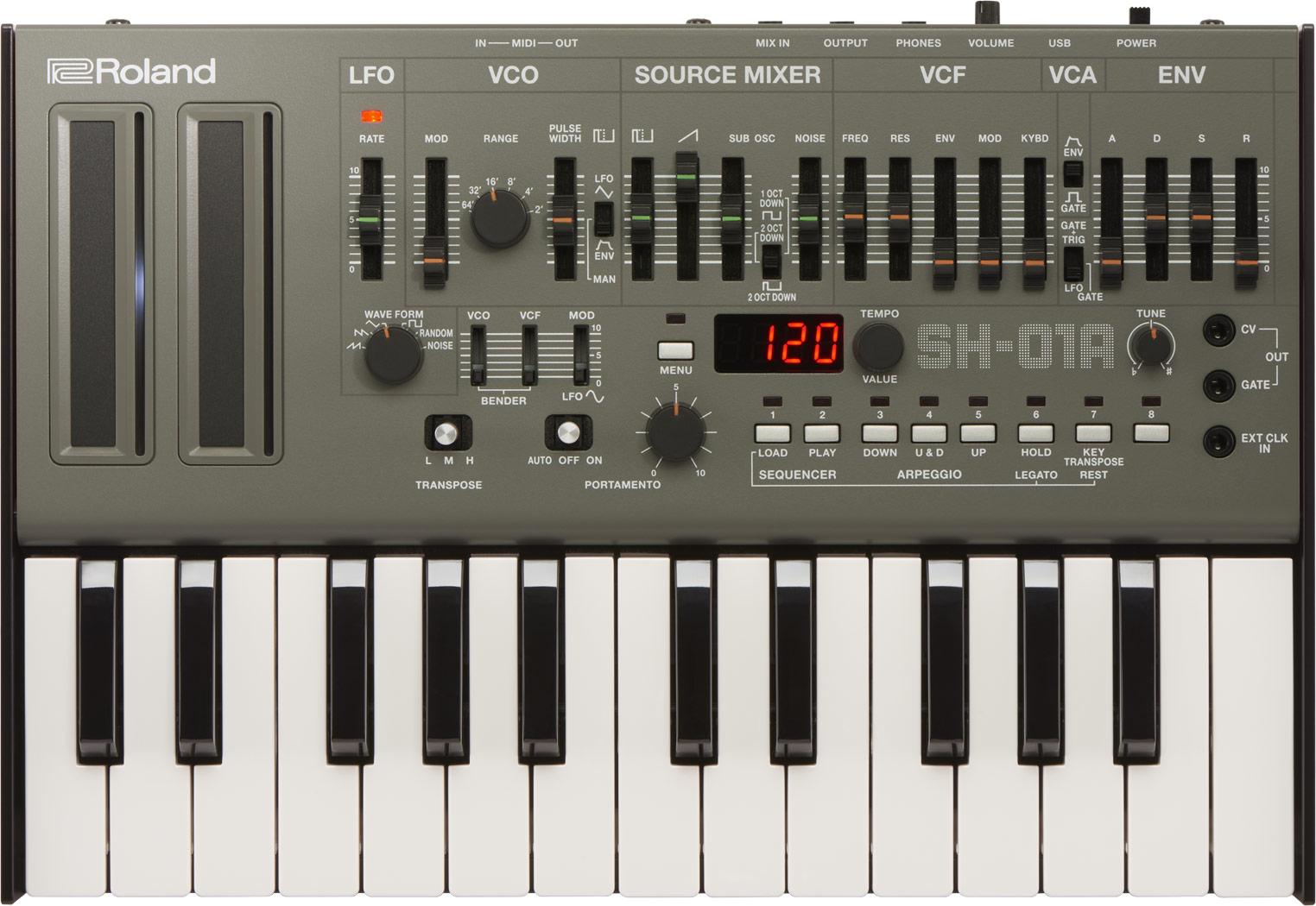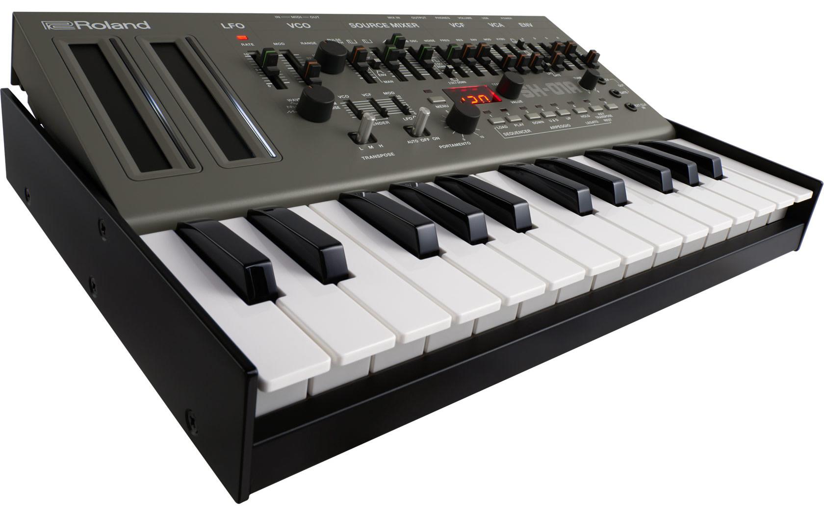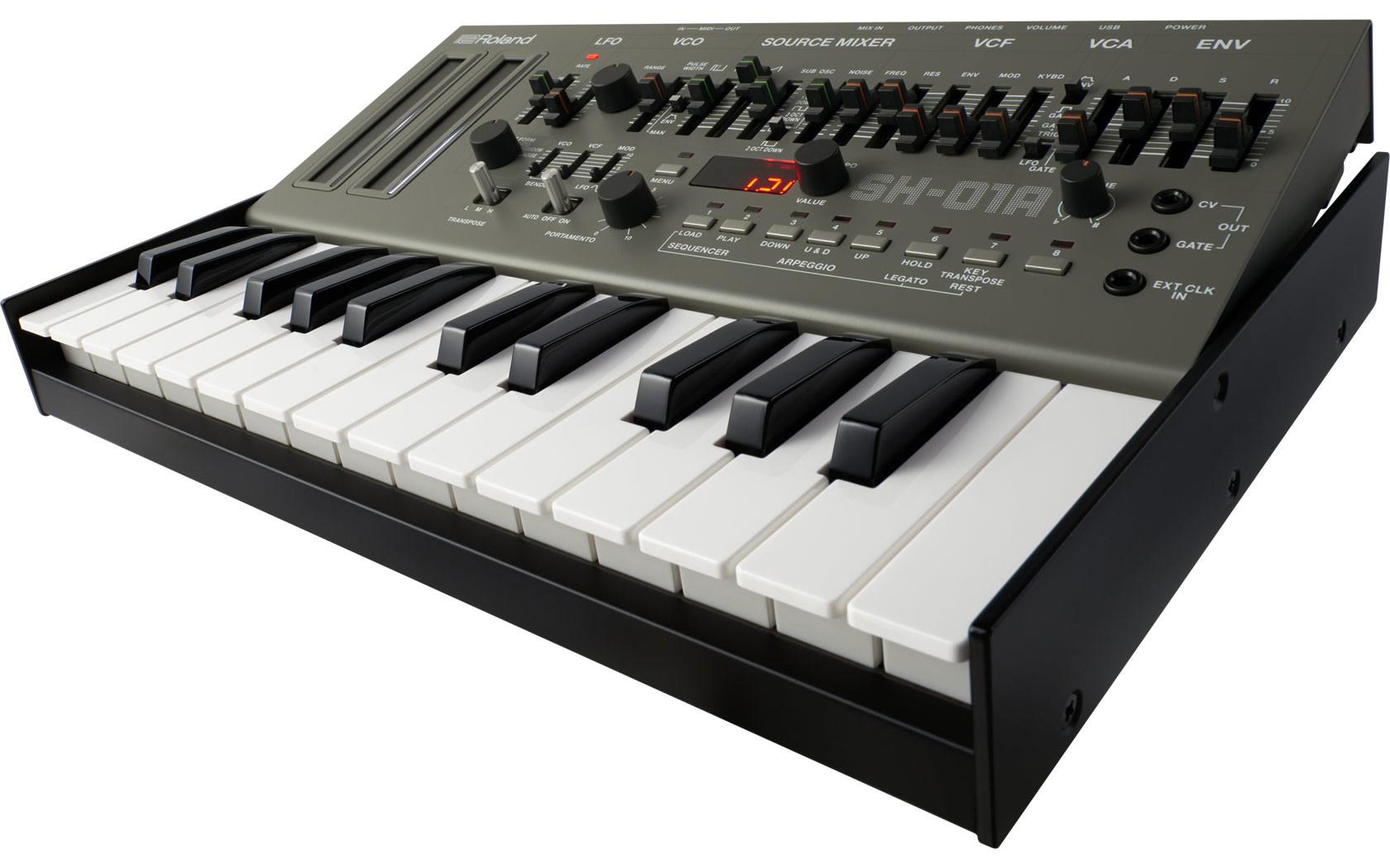 The 100-step sequencer is carried over, but up to 64 patterns can now be saved. It's also possible to use the sequencer to control modular synths and hardware modules, together with software plug-ins over the SH-01A's CV/Gate, MIDI, and USB connections. The USB port can power the synth, though there's also battery support and mobile speaker. Pair the whole thing with a Roland K-25m Keyboard Unit and you get a standalone 25-key synthesizer.