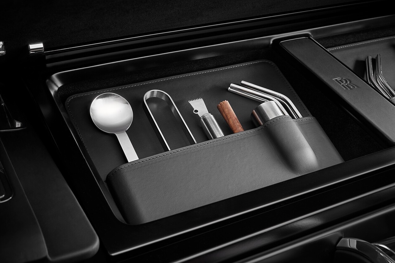 In Rolls speak, the Recreation Module is 'a motorized drawer cassette designed to fit securely and invisibly into the luggage compartment floor of the Cullinan.' For ordinary mortals, it's a nifty underfloor storage cabinet in the trunk, similar to what you'll find in a Chevy Traverse. But since we're talking about a Rolls-Royce, it's far from an ordinary plastic storage bin.
