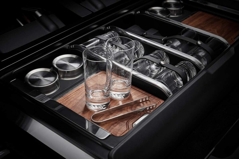 The Cullinan's Recreation Module offers 48 liters of space. Each compartment 'can be configured precisely to accommodate the customer's requirements," said Rolls-Royce, allowing customers to create storage modules for specific hobbies and applications. Hunting? No problem. Fishing? Easy. Rock climbing, fly fishing, snowboarding, or base jumping? No sweat.