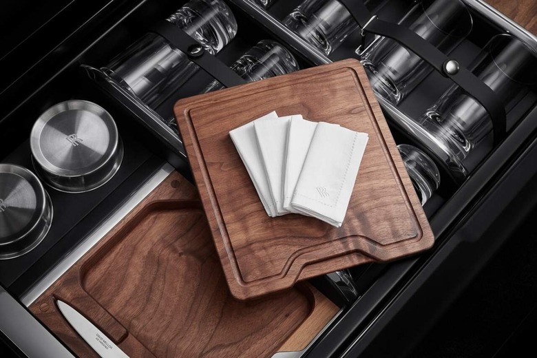 In Rolls speak, the Recreation Module is 'a motorized drawer cassette designed to fit securely and invisibly into the luggage compartment floor of the Cullinan.' For ordinary mortals, it's a nifty underfloor storage cabinet in the trunk, similar to what you'll find in a Chevy Traverse. But since we're talking about a Rolls-Royce, it's far from an ordinary plastic storage bin.