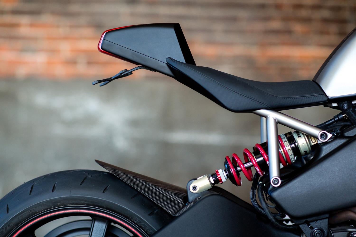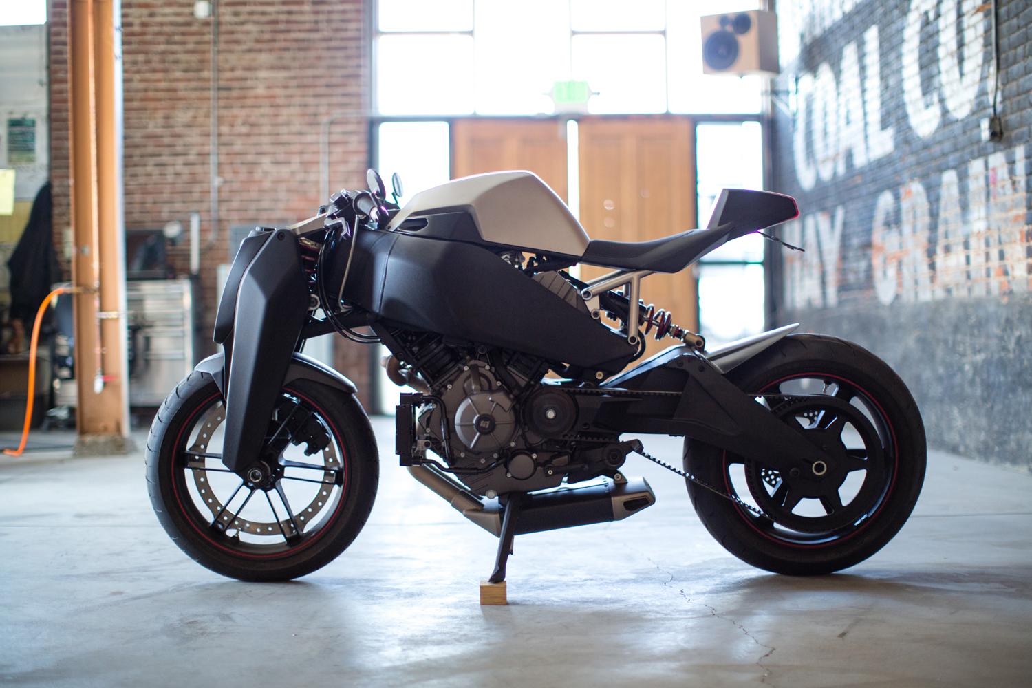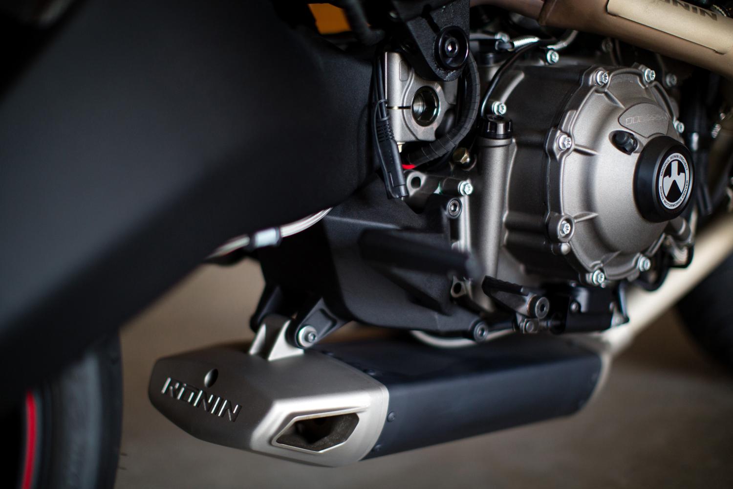 The bike is based on the Buell 1125, but the maker says new fuel mapping was used due to the exhaust system and free-flow intake used. The subframe is custom made; the electrical system has been completely designed specifically for the Ronin design.