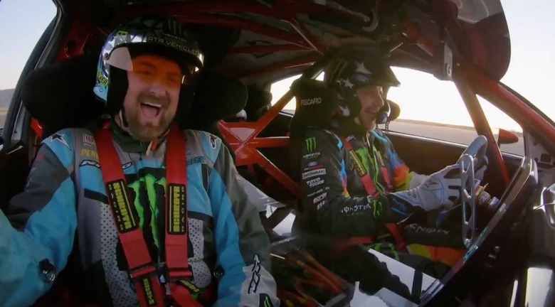 Next it was Ken Block's turn. "That's really good torque," the 'Hoonigan' comments, before he and Gittin Jr. dissolve into childish giggles at the mule's power.