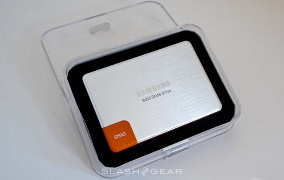 The drive itself is a 2.5-inch model with a SATA 3GB/s interface. This 256GB SKU is the largest – Samsung also offers 64GB and 128GB versions, the capacity neatly stencilled onto the corner of the drive – and uses homegrown Samsung controllers and NAND flash. There are also two 128MB cache chips, for a total of 256MB.